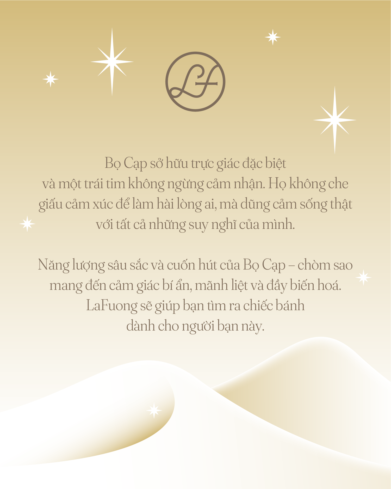 Chiếc bánh dành cho Bọ Cạp cũng nên như vậy: Không cần màu mè, nhưng phải đủ chiều sâu Không cần cầu kỳ, nhưng phải thật tinh tế trong từng lớp vị. Vậy đề xuất của LaFuong là?