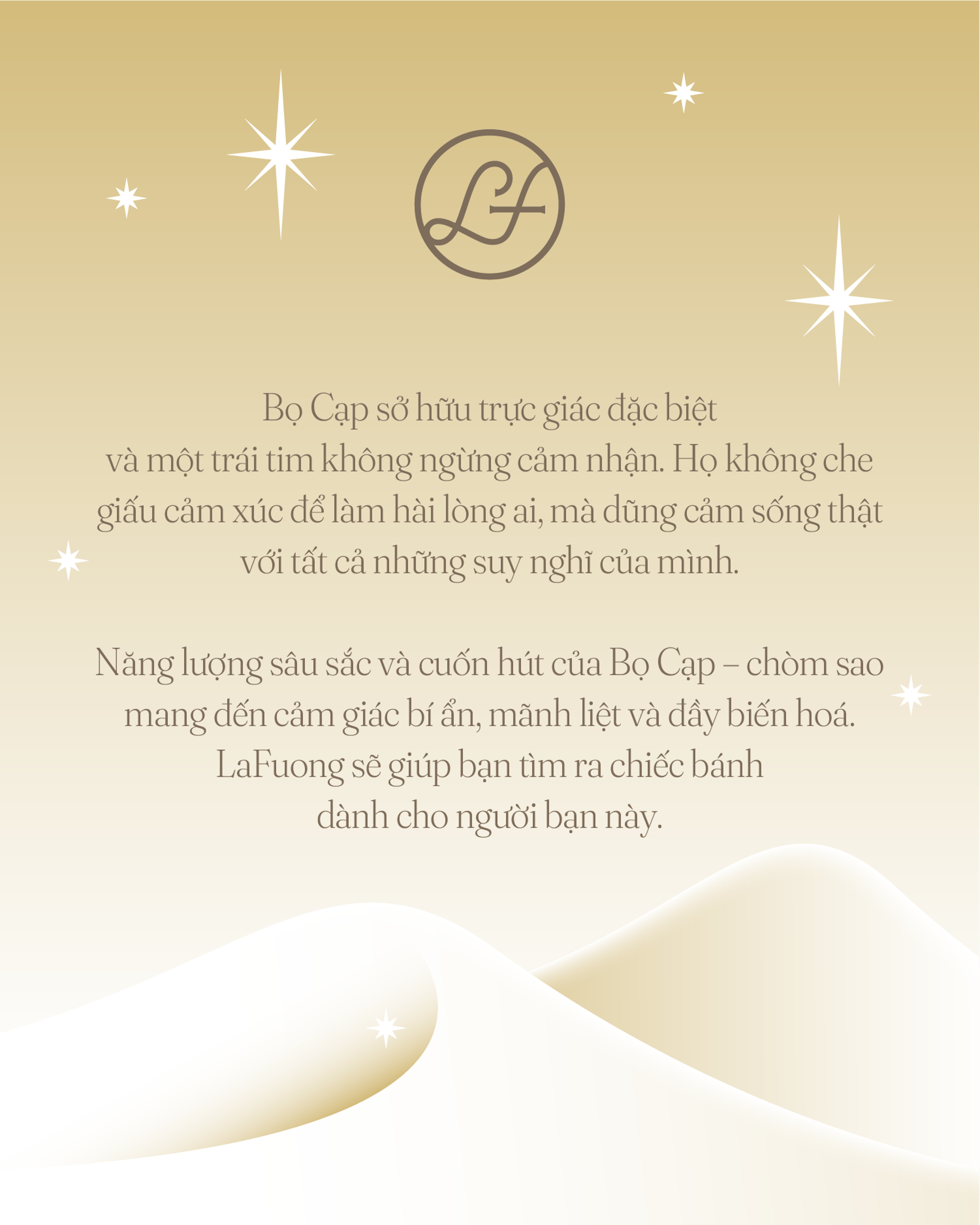 Sau mùa Thiên Bình nhẹ nhàng và hài hòa, bầu trời chiêm tinh dần chuyển mình mạnh mẽ hơn dưới năng lượng sâu sắc và cuốn hút của Bọ Cạp – chòm sao mang đến cảm giác bí ẩn, mãnh liệt và đầy biến hoá. Nếu bạn đang muốn chọn một món quà cho người luôn yêu sâu, sống thật và cảm nhận thế giới bằng một trái tim nhạy bén, LaFuong gợi ý: