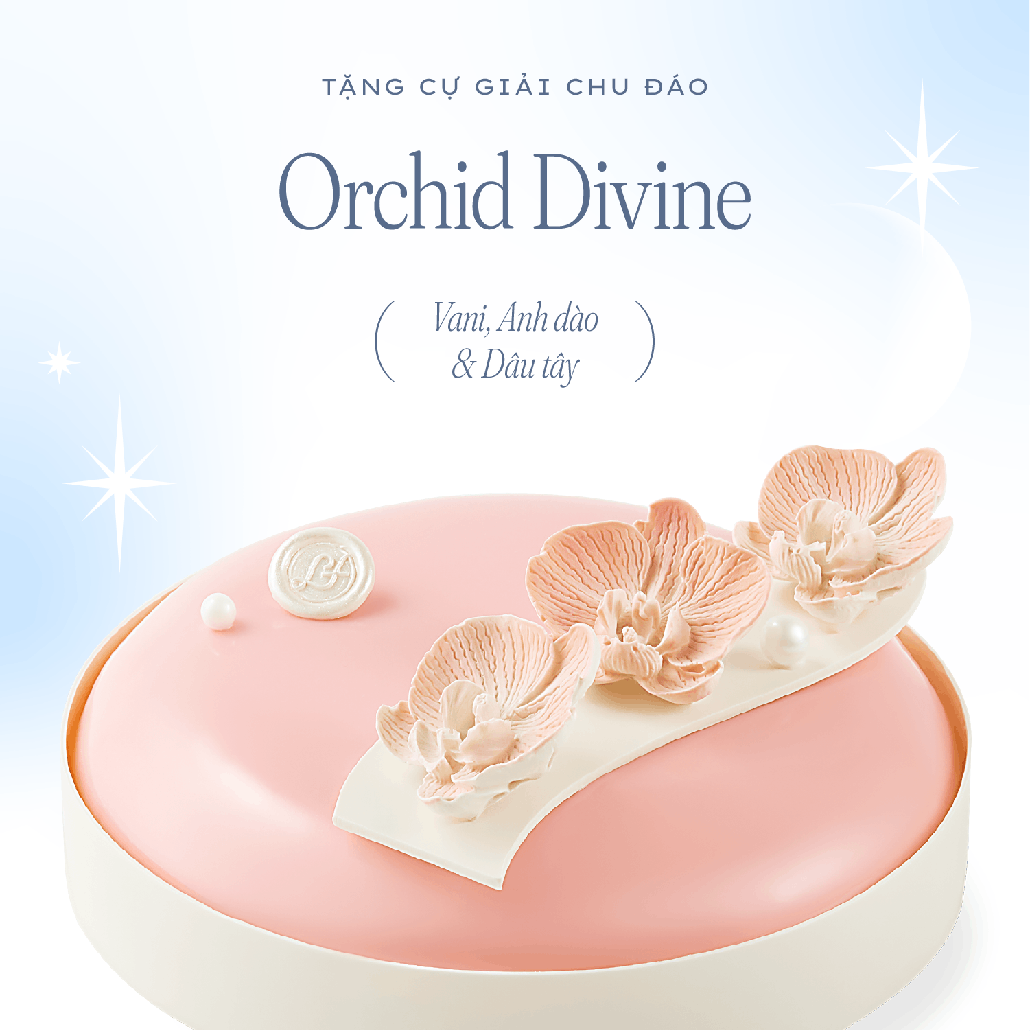 🌙 Cự Giải mộng mơ - Orchid Divine, với sự ngọt ngào bởi kem mousse vani Madagascar, kết hợp với mứt anh đào & dâu tây.