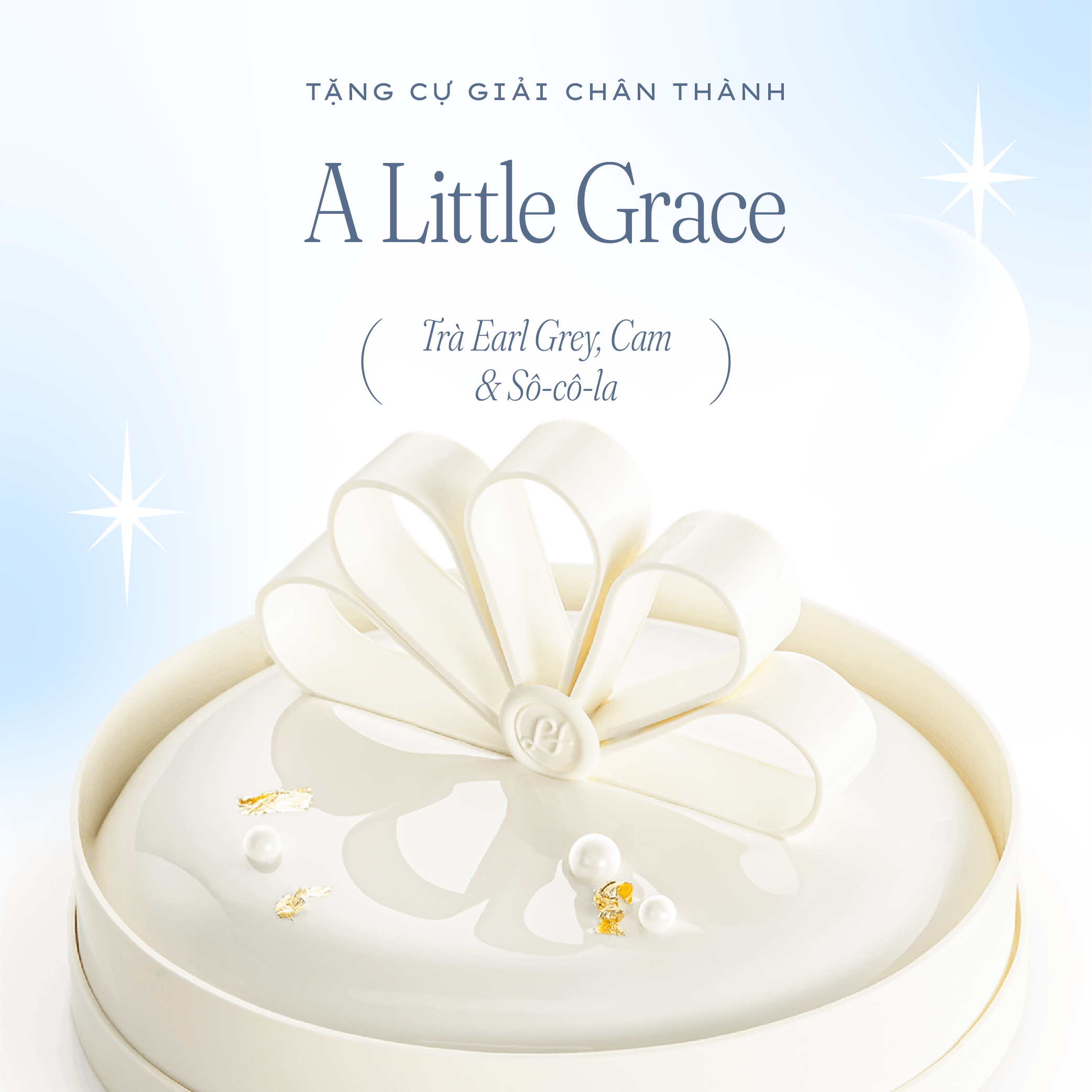 🌝 Cự Giải chân thành - A Little Grace, với kem mousse trà bá tước ngọt thanh, cùng với kem ngậy sô-cô-la đen và cam đỏ đầy tinh tế.