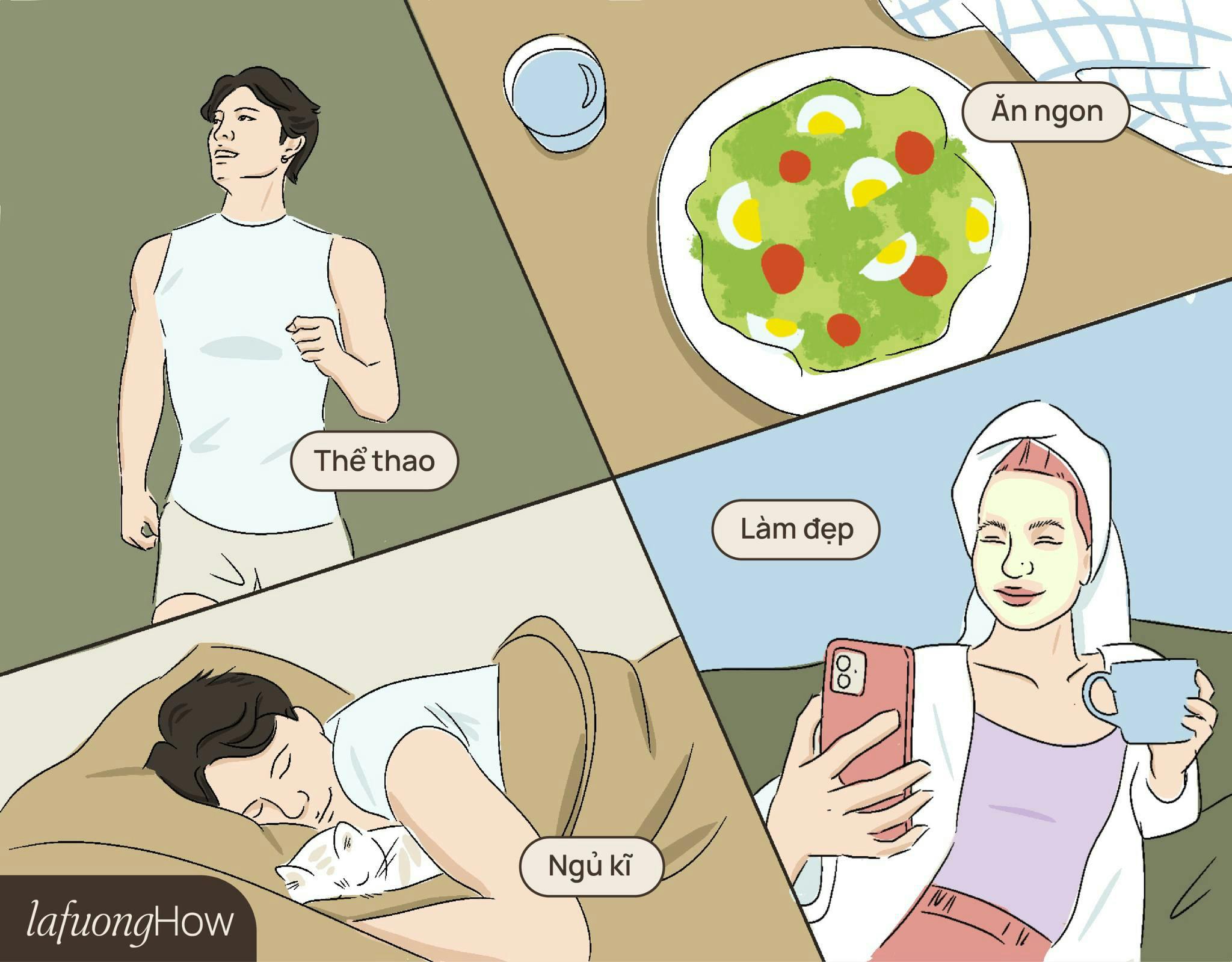 Dành 30p tập luyện đi bộ hay chạy bộ, những bữa ăn homemade đầy đủ dinh dưỡng thay cho đồ tiện lợi trong siêu thị, một giấc ngủ sâu 8 tiếng, hay đắp mặt nạ xem phim với một cốc trà nóng. Bạn chỉ cần bắt đầu đơn giản vậy thôi đó.
