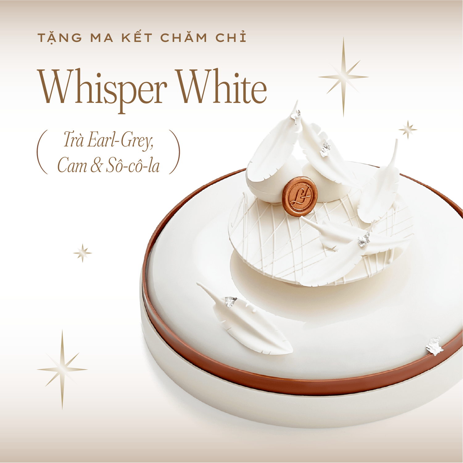 Whisper White – Vị trà Earl Grey thanh lịch, kết hợp cam đỏ & sô-cô-la đen tạo nên một chiếc bánh có chiều sâu nội tâm như chính họ.
