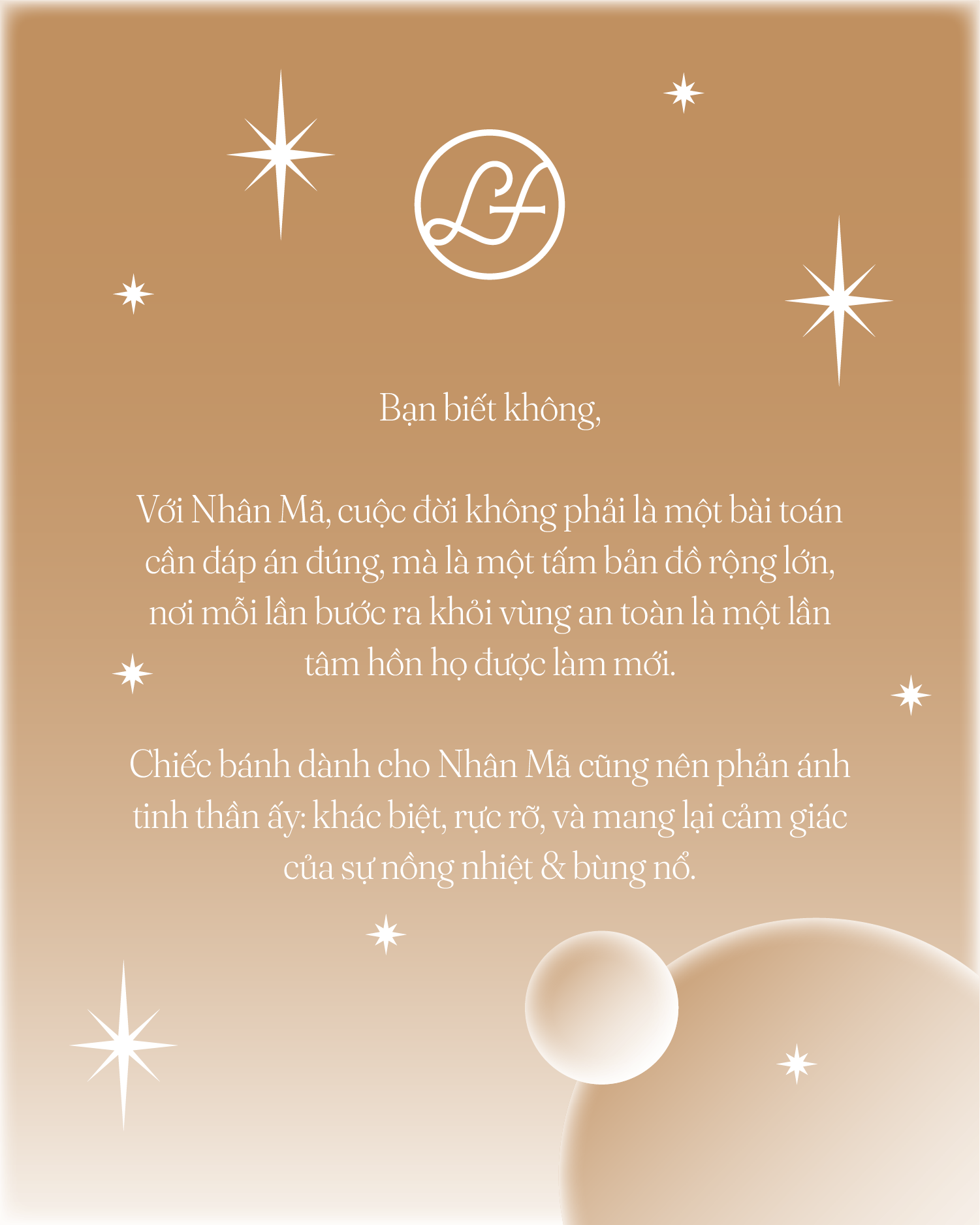 LaFuong gợi ý bạn hãy chọn một chiếc bánh giàu năng lượng, mang trong mình sự bất ngờ, kết hợp vị táo bạo. Bởi Nhân Mã không muốn ăn “thứ họ từng ăn rồi”. Họ muốn thử, muốn khám phá, và muốn thấy điều gì đó khác biệt.