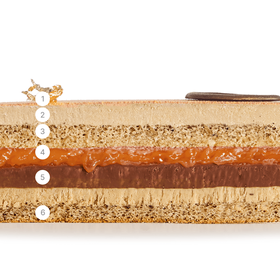 O’grey mang hương vị đậm đà của trà Earl Grey được ủ lạnh trong lớp kem mousse, cùng sự tươi mới của mứt cam ruột đỏ được nấu chậm và chút ngọt ngào của lớp crémeux làm từ sô-cô-la đen. Nếu bạn thích cảm giác khi nhâm nhi hương vị ngọt dịu của trà, sô-cô-la cùng một chút hoa quả thì hãy thử ngay O'grey nhé.