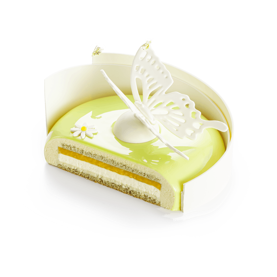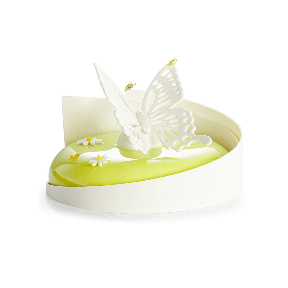Vẻ ngoài lấp lánh được phủ bởi lớp tráng gương màu xanh bơ và cánh bướm trắng độc đáo từ sô-cô-la nguyên chất, Secret Garden mang thông điệp về sự lãng mạn & tinh thần tự do.