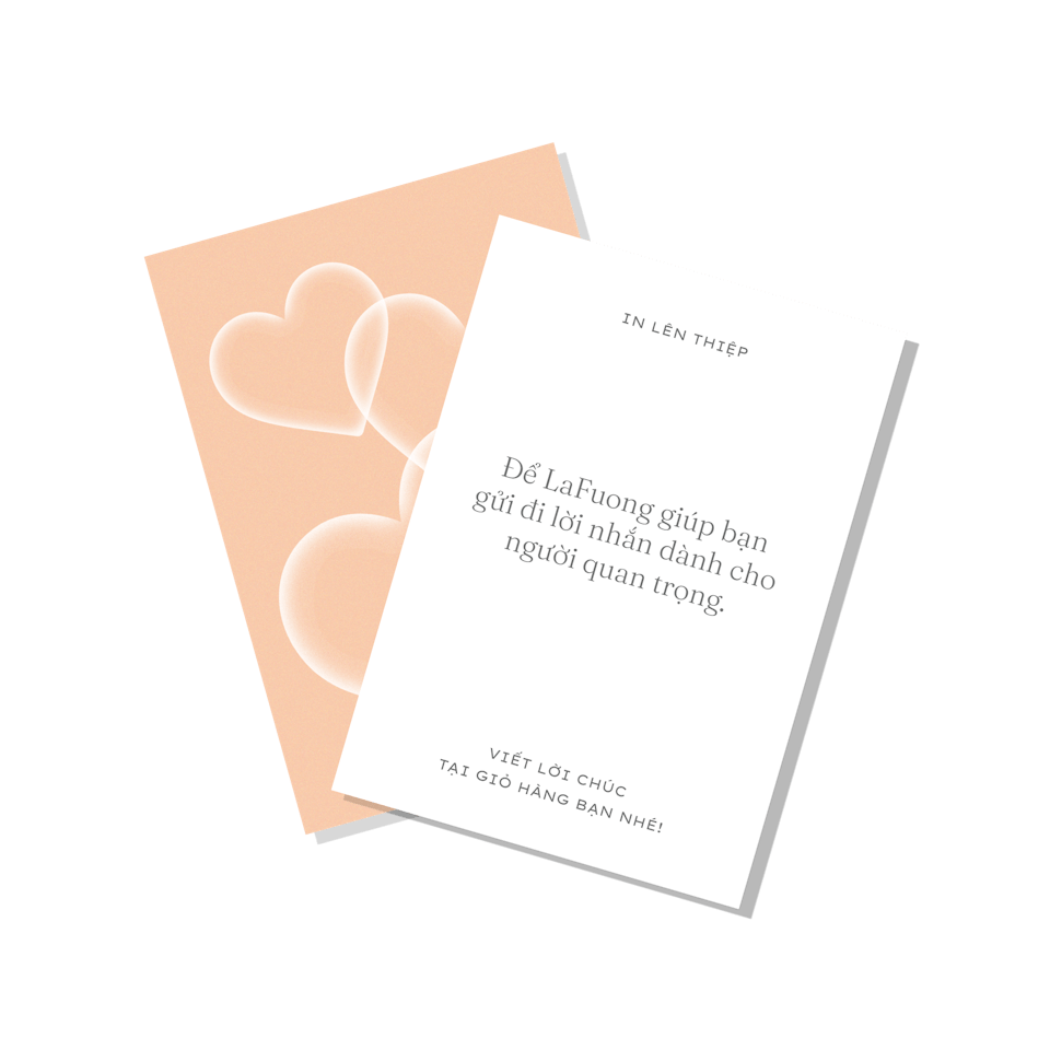 Không chỉ đơn thuần là tặng một chiếc bánh, LaFuong hiểu rằng mỗi món quà trao đi sẽ luôn đi cùng với những thông điệp quan trọng. Nếu bạn muốn gửi thiệp kèm bánh và không tiện tự viết tay, LaFuong sẽ giúp bạn in những điều bạn muốn gửi gắm lên thiệp hoàn toàn miễn phí.