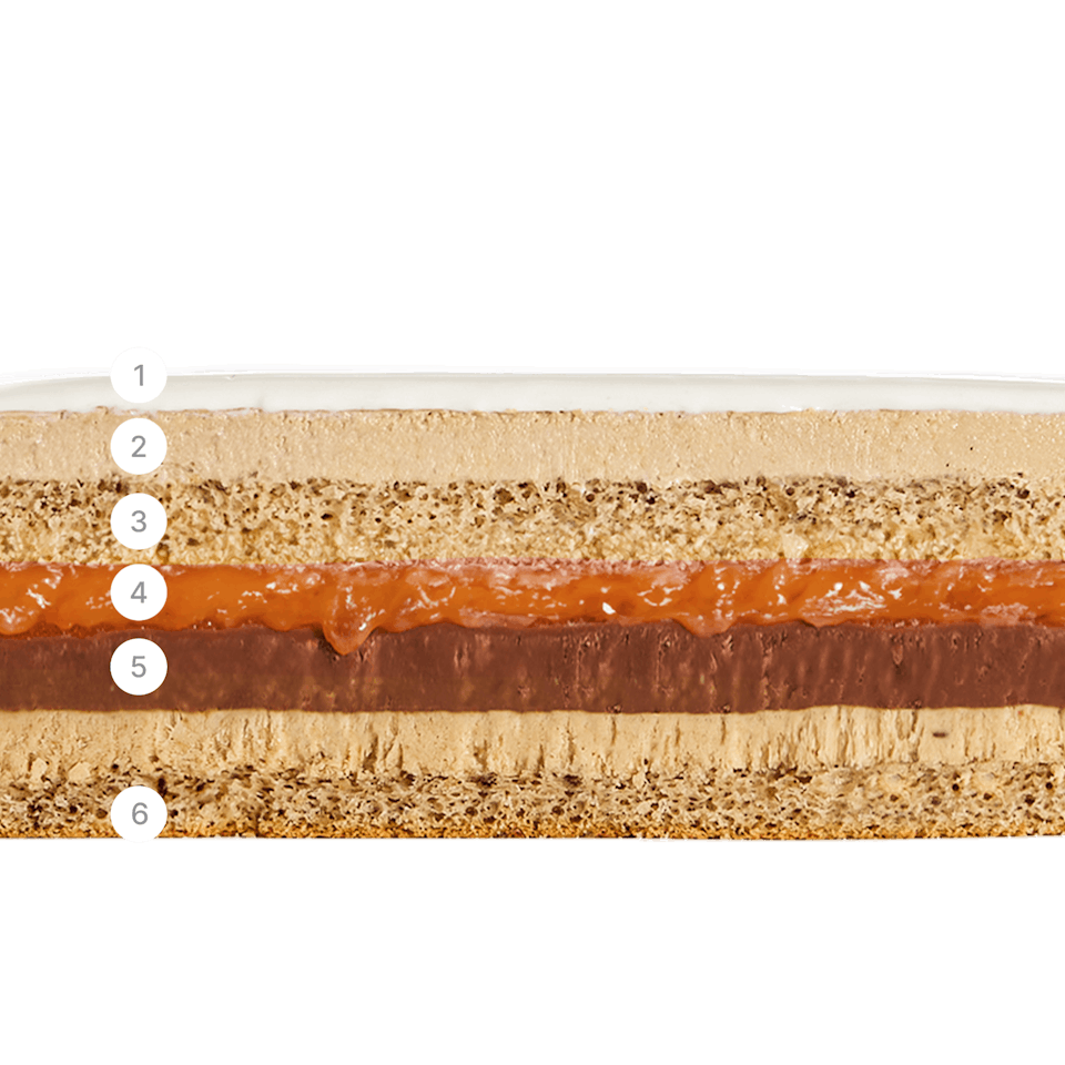 Nốt hương đầu tiên bạn cảm nhận được sẽ là vị tươi mới của lớp mứt cam ruột đỏ nấu chậm. Tiếp đó là chút ngọt dịu của lớp crémeux làm từ sô-cô-la đen nguyên chất và hậu vị đọng lại sẽ là sự đậm đà trong lớp kem mousse làm từ trà Earlgrey được ủ lạnh qua đêm.